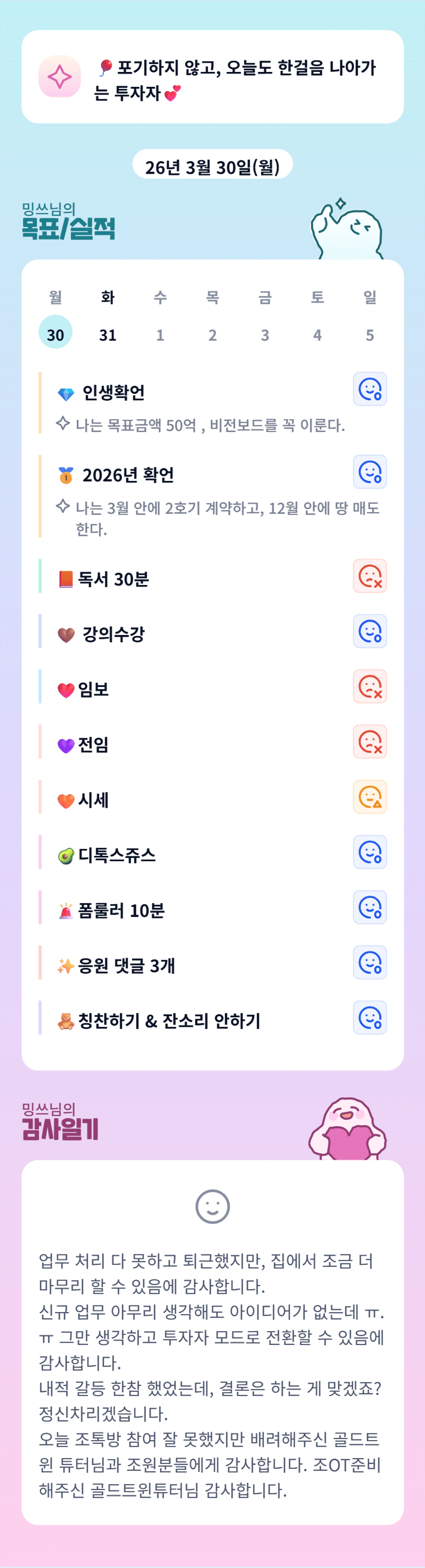 밍쓰님 이번달도 엄청 바쁘시군요 ㅠㅠ 한달간 잘 부탁드립니당 🙌🙌🙌