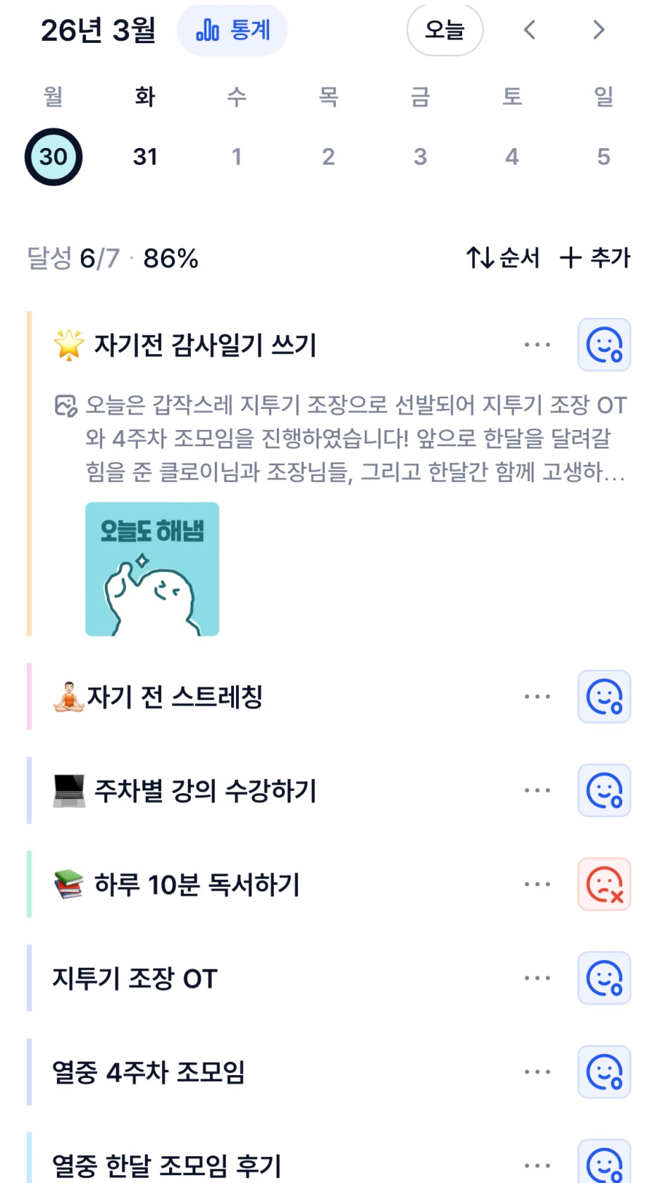 한달 동안 조장활동, 동료들과 캐미 홧팅입니다~