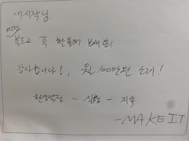 새시작님 만나뵙게 되어 너무 좋았습니다 ㅎㅎ !! 너무 좋은 질문들로 긴 시간 채워주셔서 저도 덕분에 좋은 답변 들을 수 있었어요 같이 끝까지 잘 가봐요 화이팅!