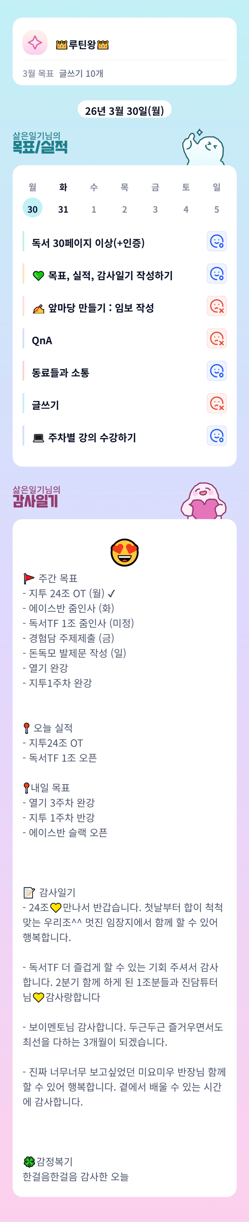 보이멘토님❤️ 일기님 이번분기 완전 빠이팅이예요🥰🥰