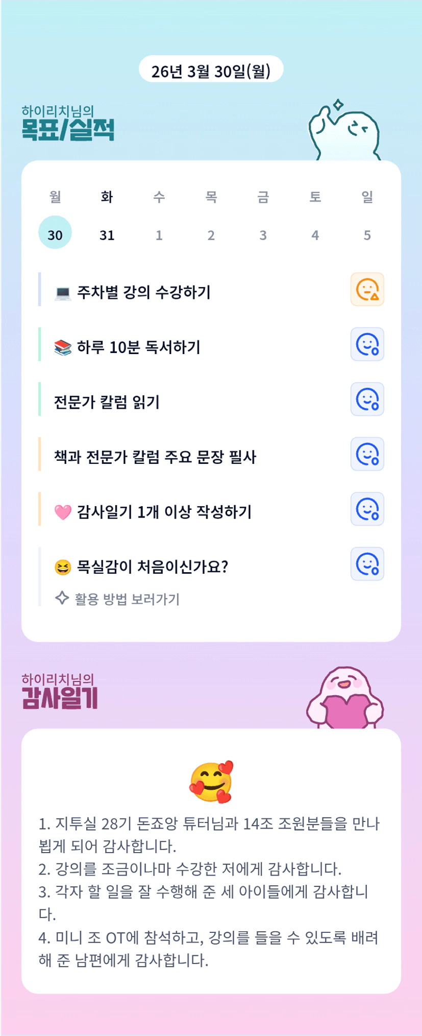 이번 한달 잘 부탁드립니다 하이리치님~