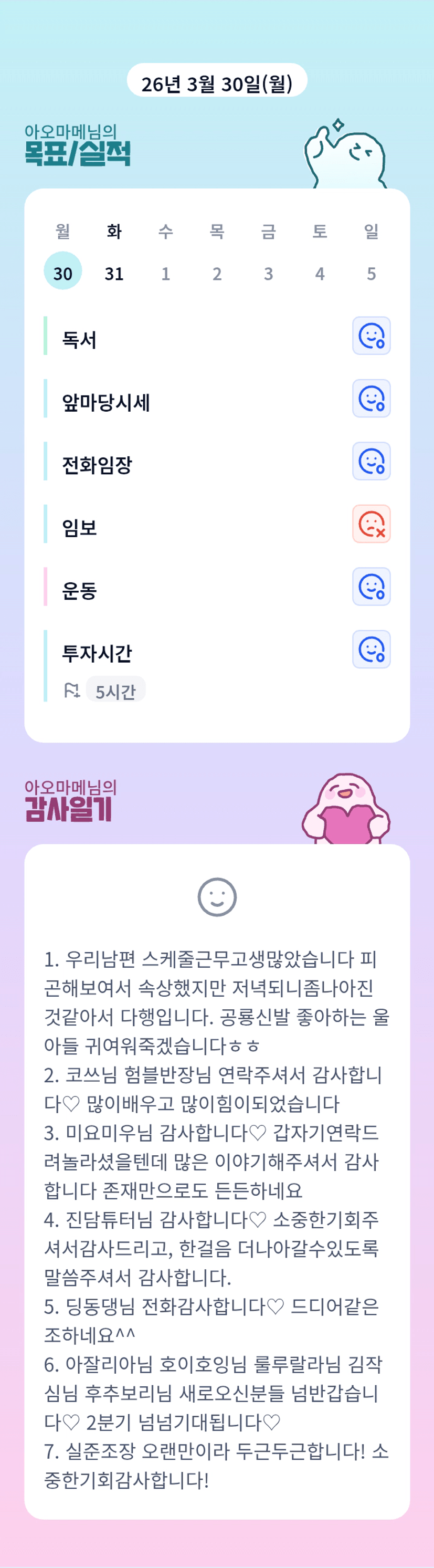 마메님 감사함이 가득한 하루네여ㅎㅎ 오늘도 화이팅!!
