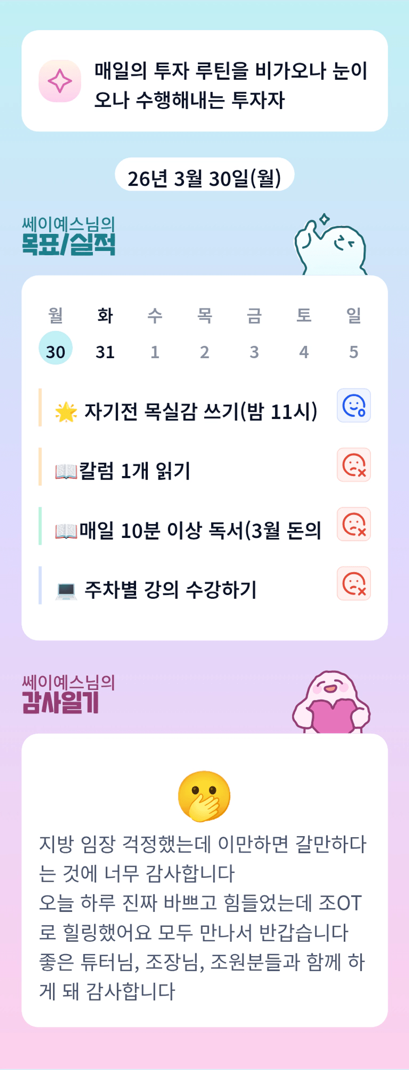어머나 저두 어제 튜터님 오티받구 힐링되었는뎅^^ 4월 함께 빠이팅해용~^^