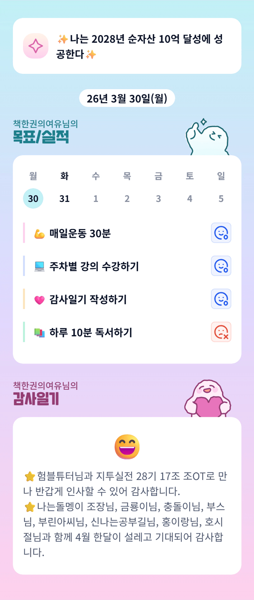여유님~ 이번달 함께 재밌게 해봐용 💛