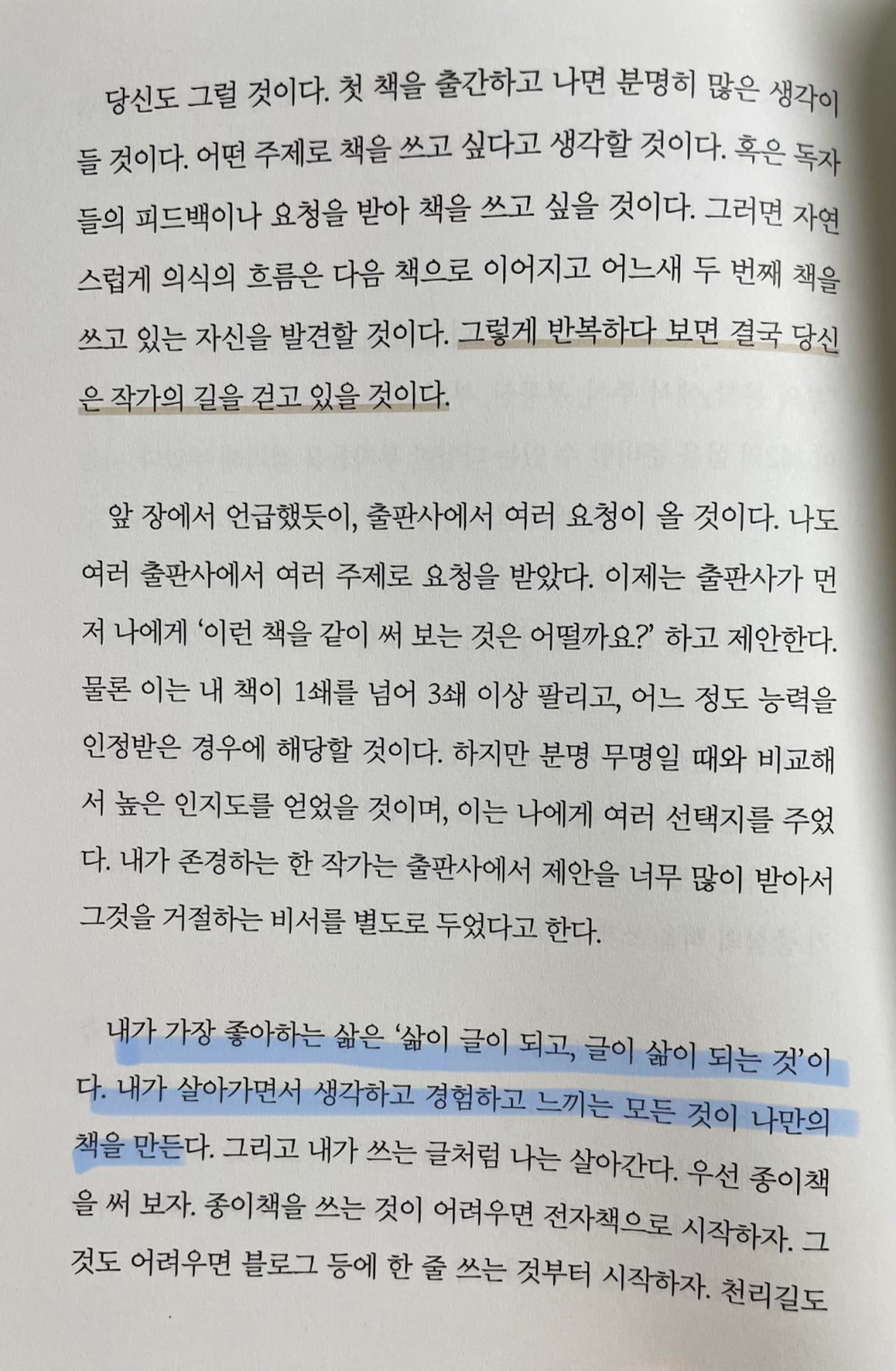 저자가 가장 좋아하는 삶은 '삶이 글이 되고, 글이 삶이 되는 것'이라고 했는데요, '글이 삶'이 된다는 거, 제가 희망하는 아름다운 글처럼 아름다운 삶이 된다면 나중에 자신의 삶을 돌아보았을 때 더없이 만족스러울 거 같습니다. 그야말로 워너비네요.