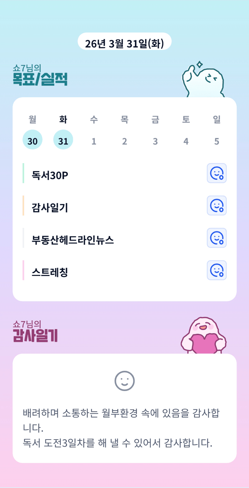 오호 울 쇼님 독서 3일차 해냈다.....오늘도 홧팅 홧팅