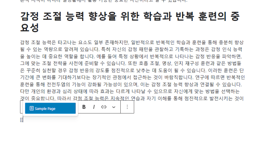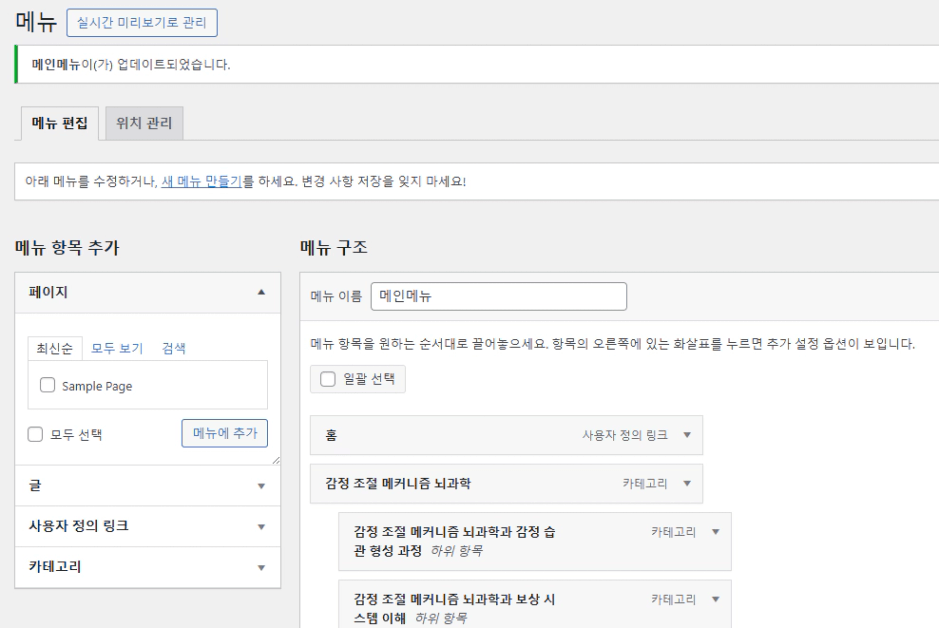 메뉴에서 카테고리는 전부 만들었는데, 글쓰기에서 [[입력하면 sample page만 나옵니다.