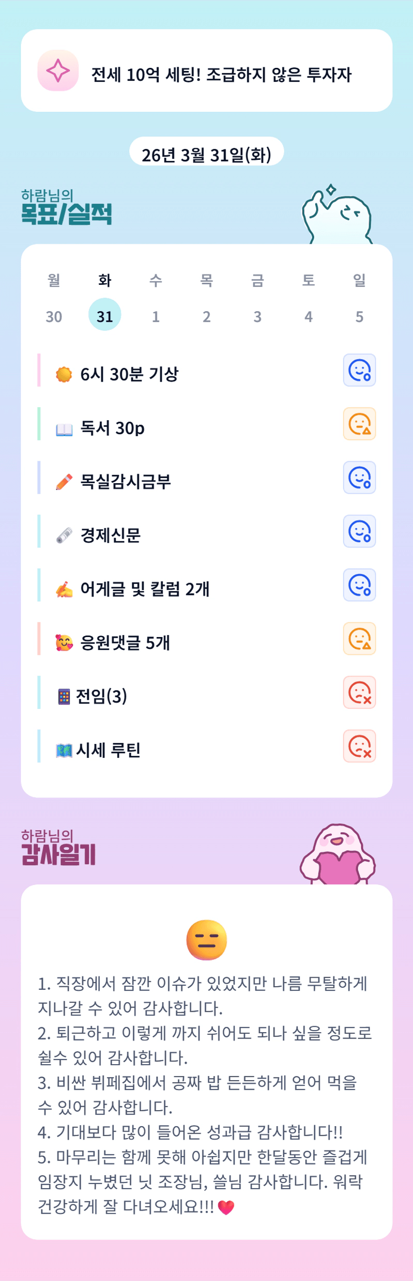 이렇게 꾸준히 노력하시는 거 늘 리스펙입니다👍🏻 4월에도 화이팅이에요 :)