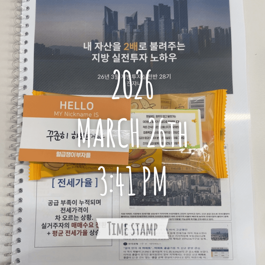 이번 오프 1강을 신청한 이유는 1호기 매물코칭을 잔쟈니 튜터님께 받았고, 무사히 잔금까지 마무리 할 수 있었기에 감사하다는 마음을 꼭 전하고 싶어서였다. 튜터님께서는 투자후기 읽어보셨다고 하셔서 깜짝! 놀라기도 했는데 튜터님을 다시 만나니 꾸준히 성장할 수 있는 환경에 오래오래 머무르고 싶다는 생각이 들었다. 지치고 힘들면 오프강의를 들으며 나보다 한 발 앞서 길을 걸어가고 있는 멘토님, 튜터님들께 조언을 구하기. 투자 공부를 하며 벽이 생긴다면 적극적으로 돌파구를 찾아야 하는건 온전히 내 몫이다. 지금처럼 꾸준히 열정을 잃지 않고 한 걸음 더 나아가야 겠다. 이번 4월도 화이팅^^!