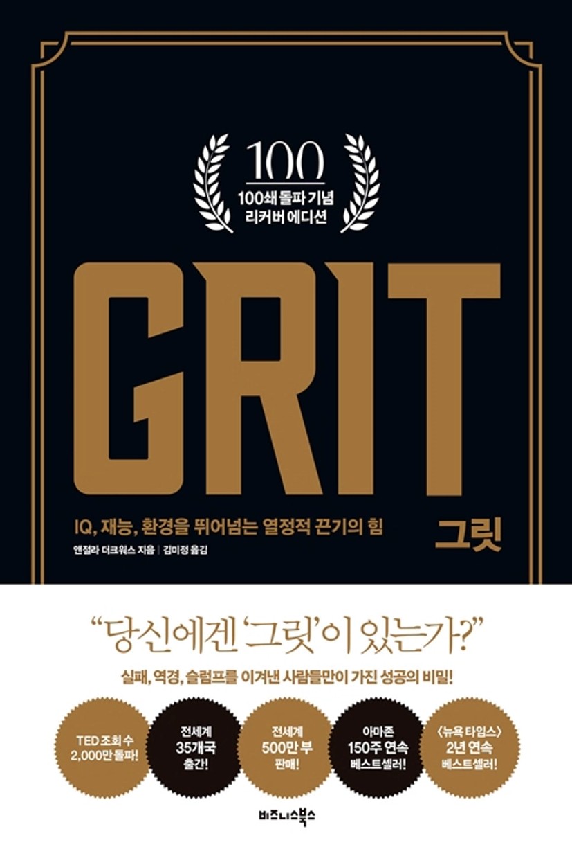 주언규 PD는 이 책에 등장하는 그릿 테스트에 대해 이렇게 말했다. “‘나는 지금 그릿 점수가 너무 부족해. 나는 안 되나봐’라 생각하지 말라. ‘앞으로 나는 이렇게 하는 사람’ 이라고 정하고 그대로 행동하면 된다.”