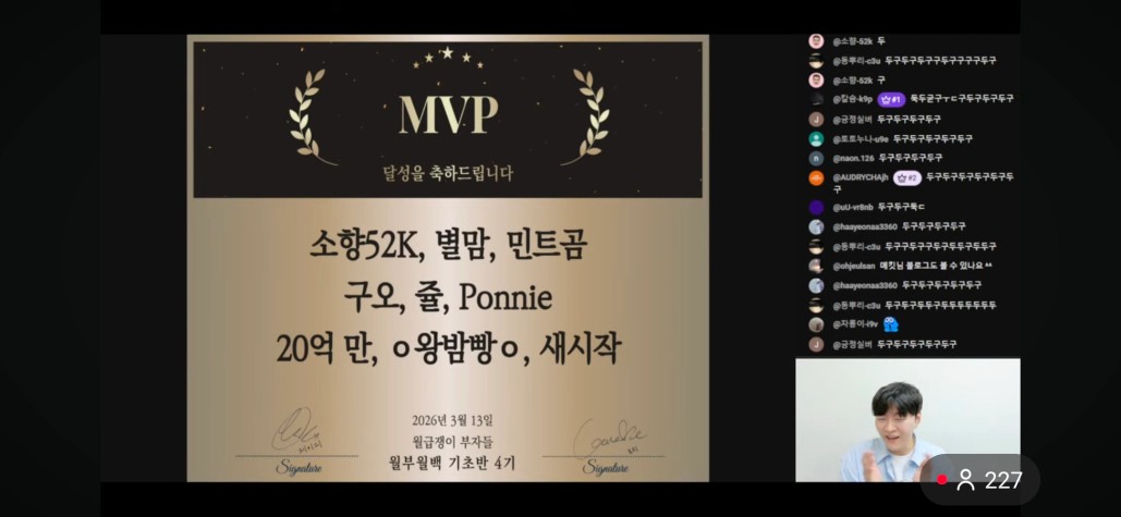 함께 MVP로 오셨던 소향님, 새시작님, 별맘님, 구오님, 쥴님, 포니님, 20억만님!