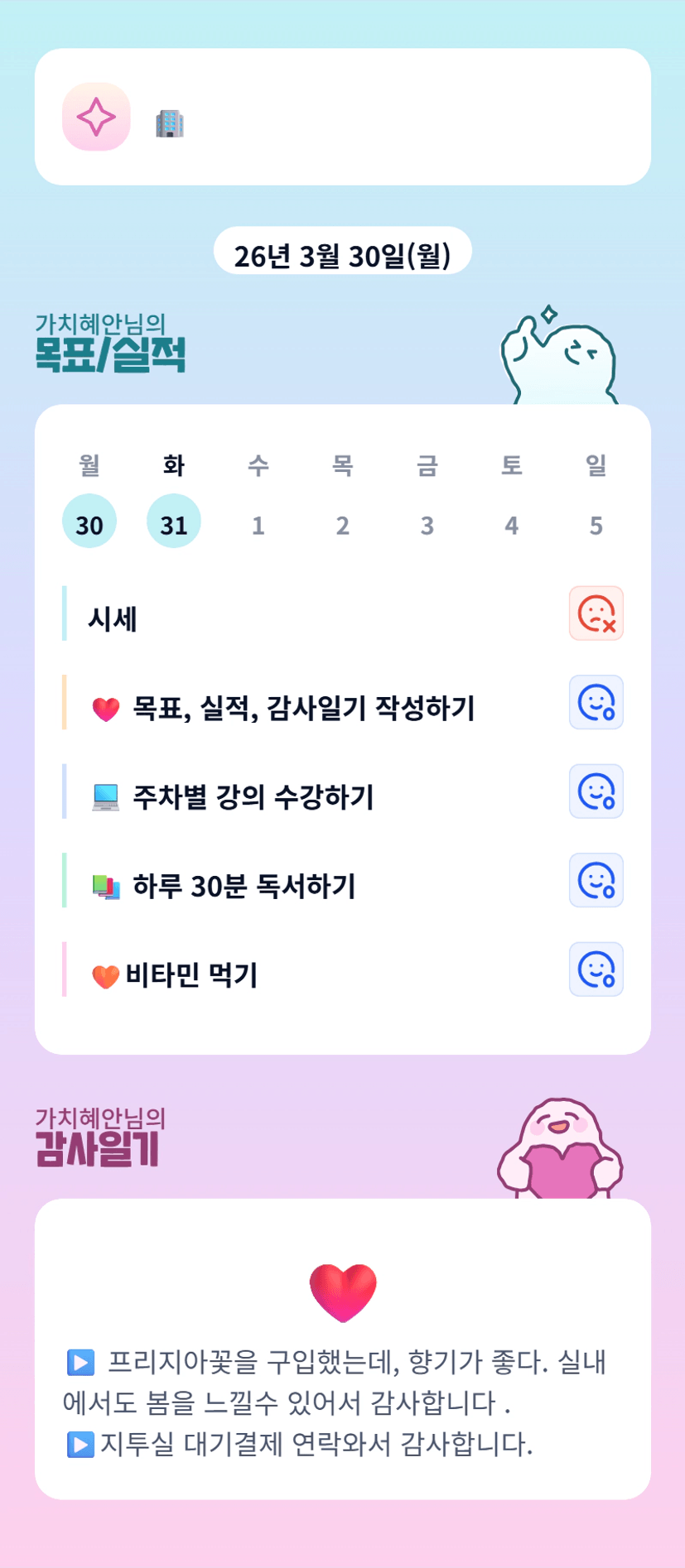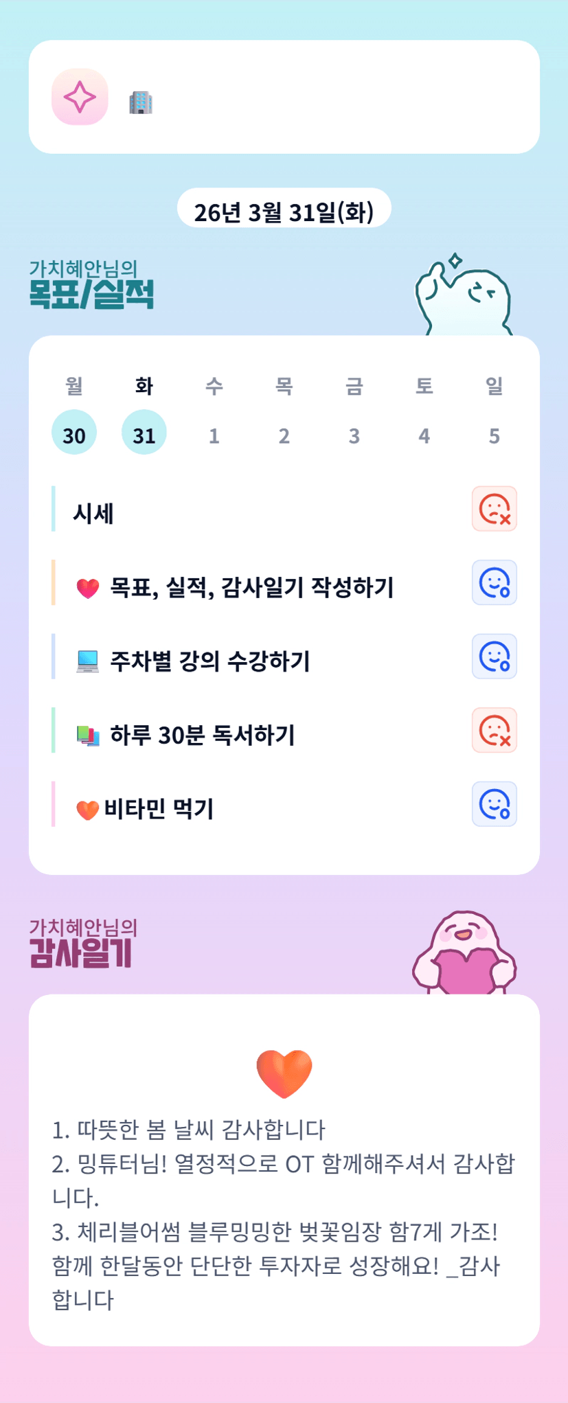 진짜 울 튜터님 빠워오티 너무 즐거웠어요ㅎㅎㅎ 혜안님 한 달동안 같이 단단해져여!