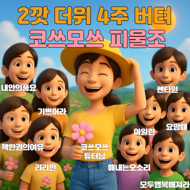 (지금도 매일매일소통하며 응원하면서 잘지내고있어요~^^♡) 실전피울조동료들 한분한분에게 진심으로 감사드립니다. (코스모쓰튜터님/풍요조장님/해내는오소리님/아일린님/책한권의소유님/리리안님/요맘때님/쎈타인님/기쁘어라님)♡ 부족한저를 이끌어주고 힘주시고 용기주셔서 지금까지월부환경속에 있을수 있었답니다.다시한번 감사또감사했다고 꼭전하고 싶었습니다.