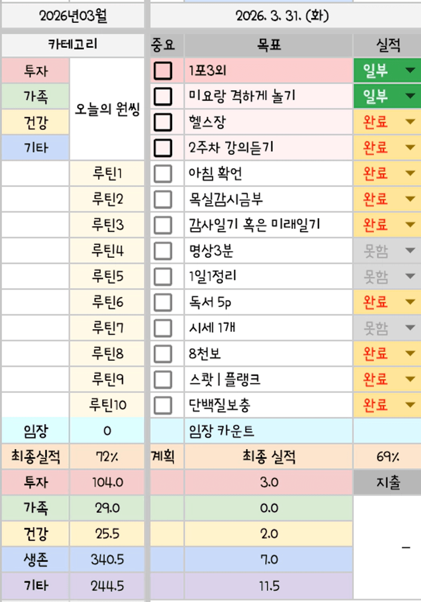 내일은 1일이어서 정신없이 바쁠테지만, 오늘 31일까지 3월을 잘 보낼 수 있어 감사합니다.
