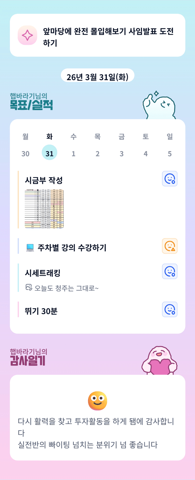 햅바님 닉넴 너무귀여워요ㅎㅎ 오늘두 빠이팅
