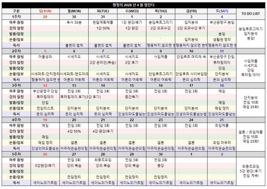 짱형님 꼼꼼하신 계획표 넘 좋네요 4월 같이 제대로 달려봐요🔥🔥