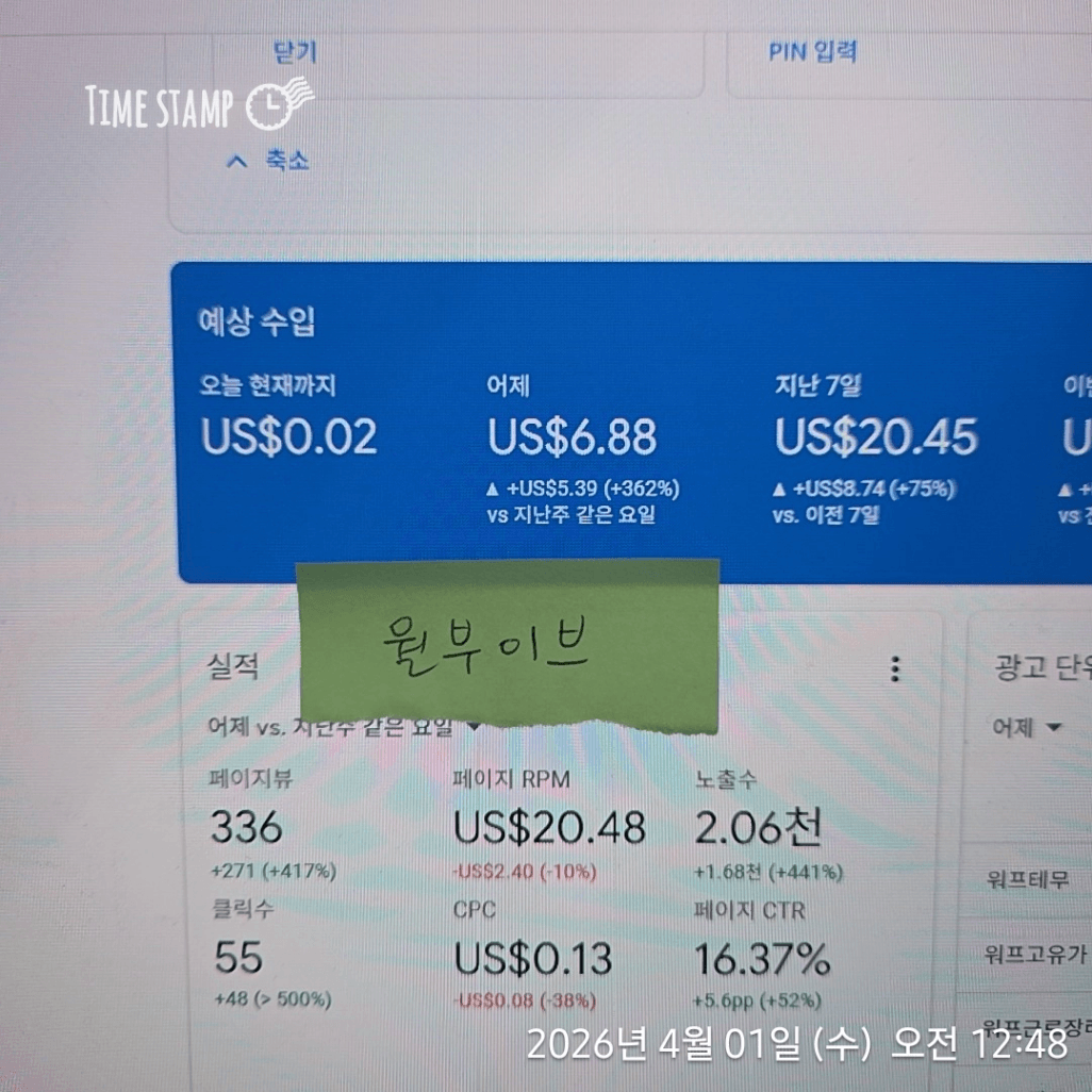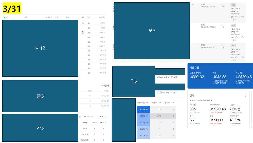 그리고 조회수는 잘 나오는데 수익이 저조한 저단가 포스팅이 하나 있었는데 오늘 고단가 광고가 클릭된 건지 클릭 한 번인데 0.62달러가 나왔다. 뭐가 맞아 떨어진건지는 모르겠지만 평소에 단가가 낮다고 해서 무시하면 안 되겠다.