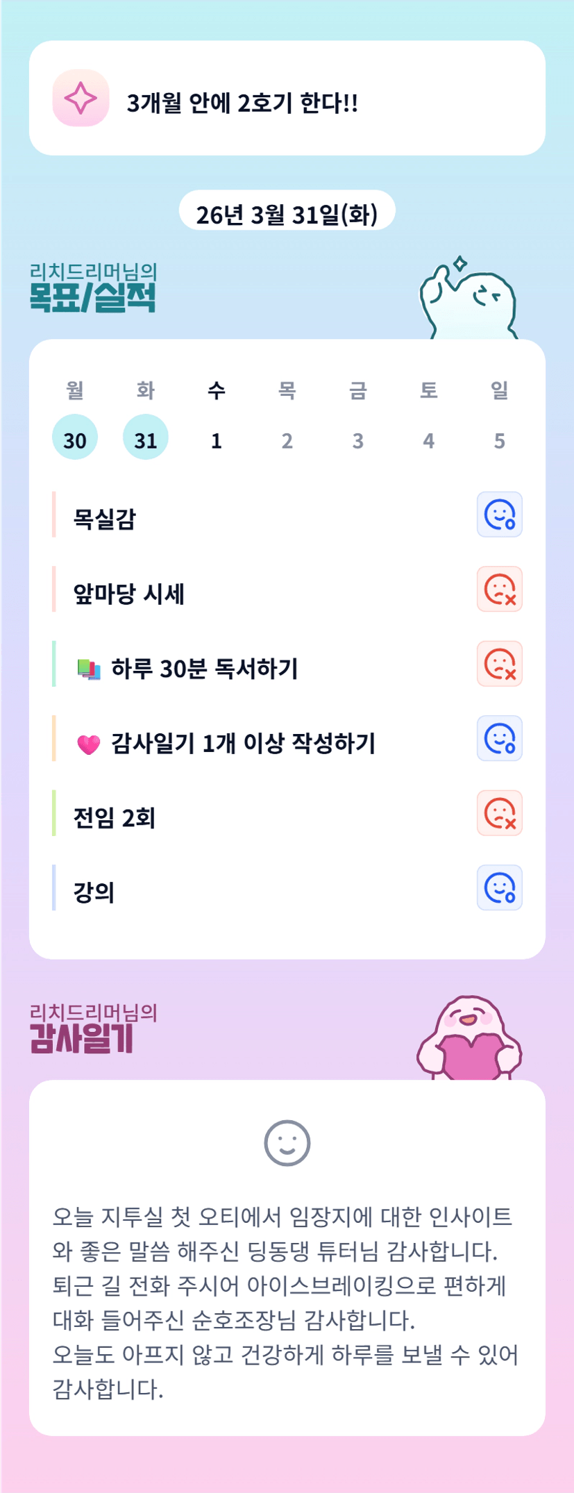 서서히 친밀도 업업 드리머님 수고하셨습니다 :)
