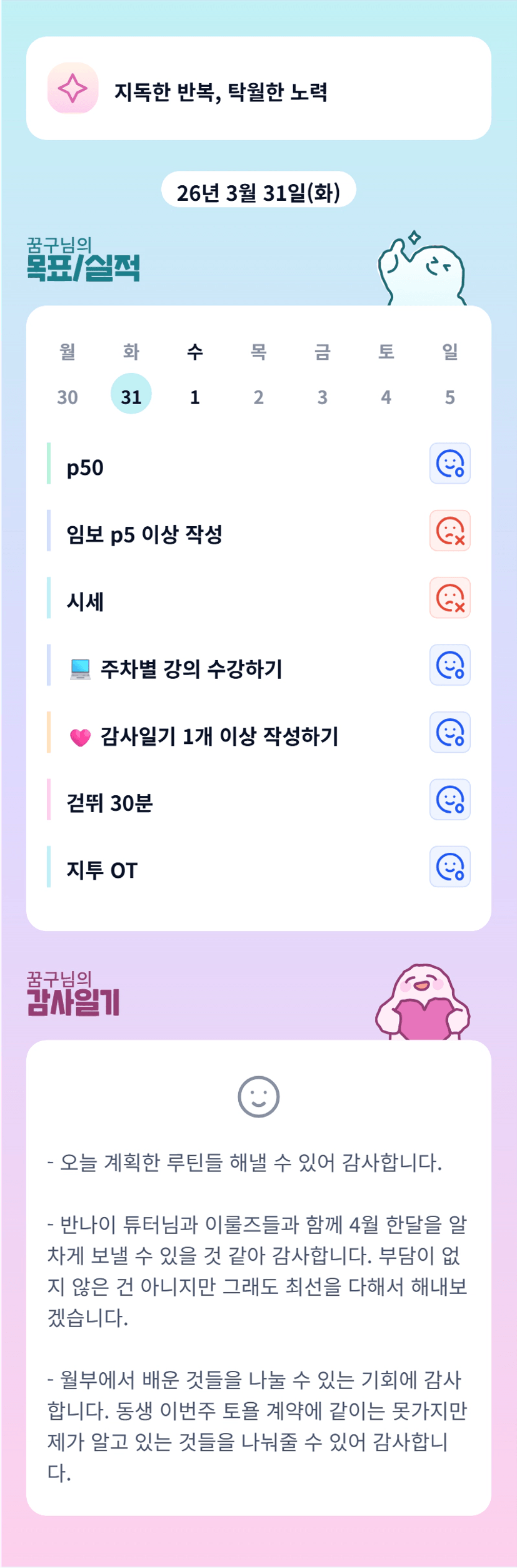 꿈구님 목실감 멋지네용! 같이 화이팅해요