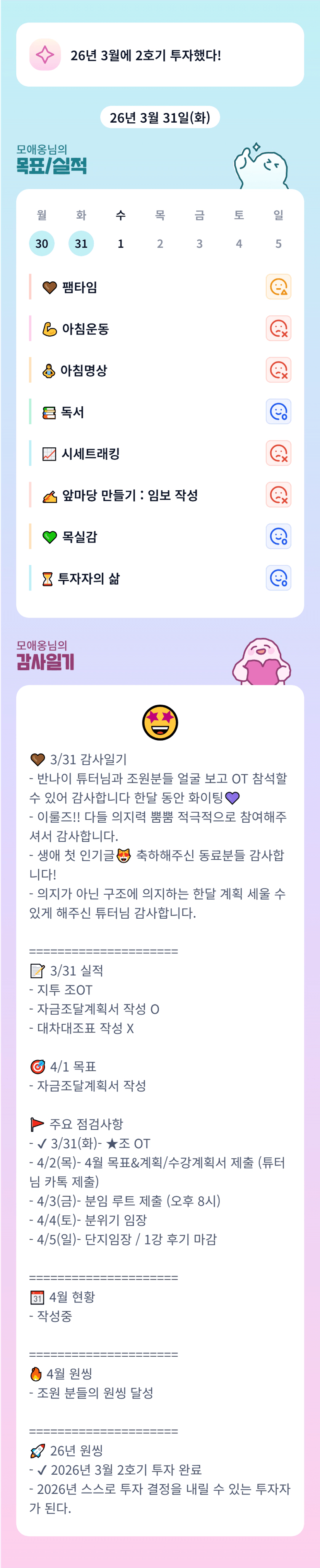 확언을 이루신 모애옹 조장님, 너무너무 축하드려요!