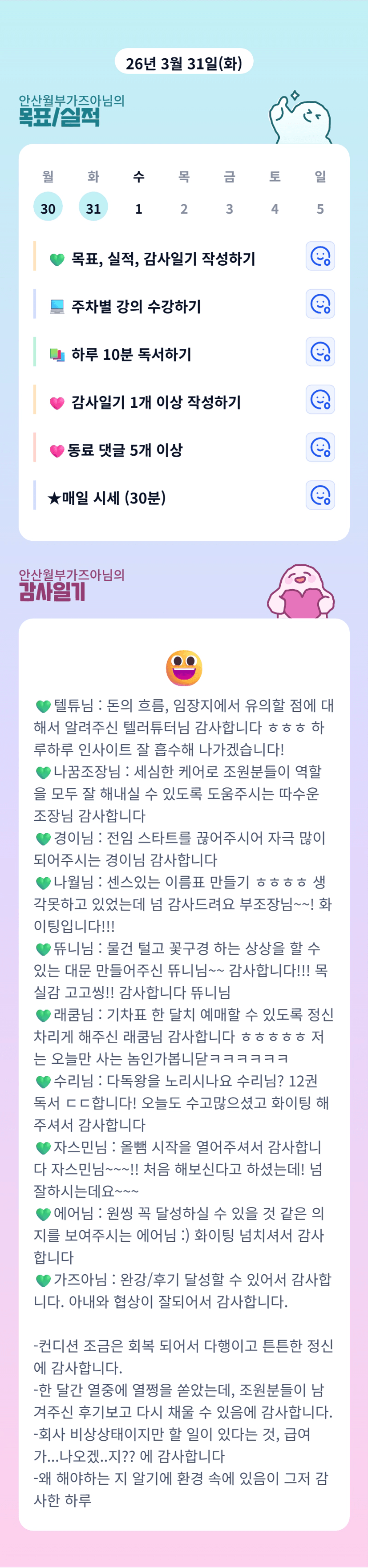 모든 분들께 감사함이 넘사벽이네요😊 오늘도 빠팅입니다🔥
