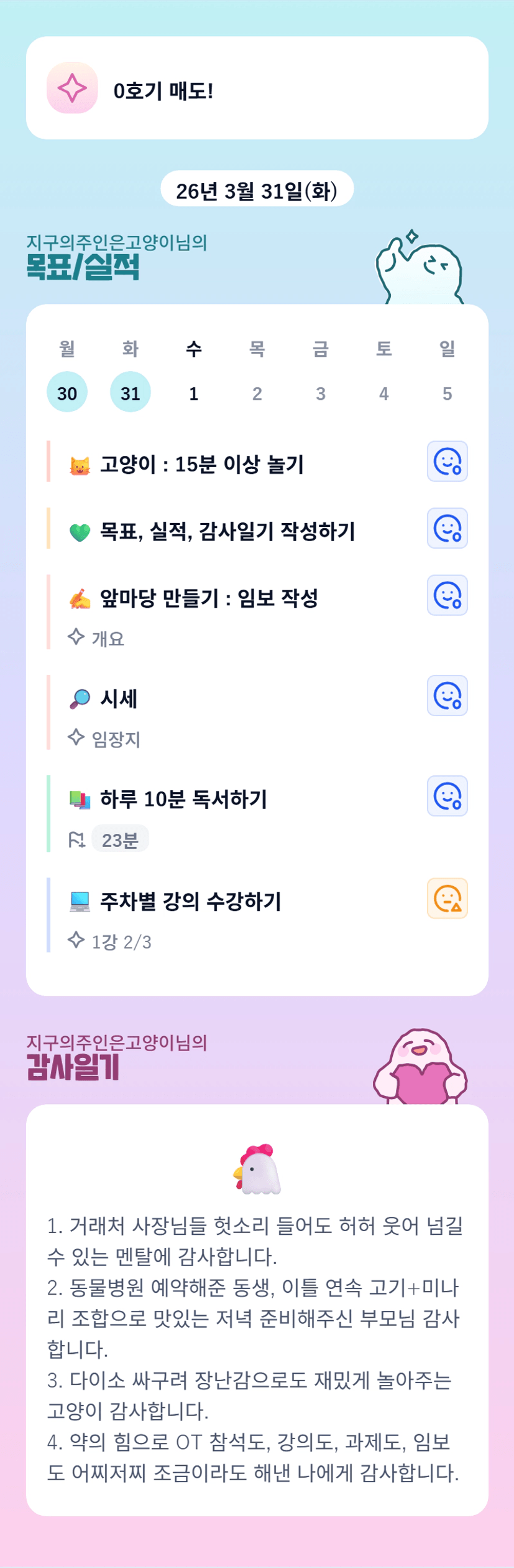 [실전33기 S2쉿! 밍튜님과 오늘부터 1일이조 지구의주인은고양이] 최종임장보고서
