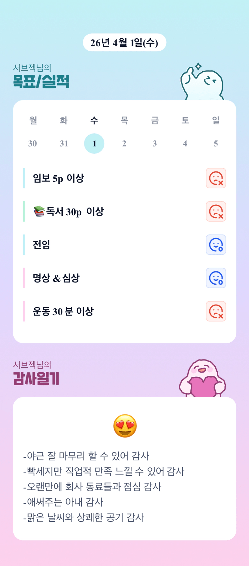 빡세지만 직업적 만족도... ㅋㅋㅋ 정말 공감가는 목실감입니다^^ 서브젝님 갓생 화이팅입니다!!