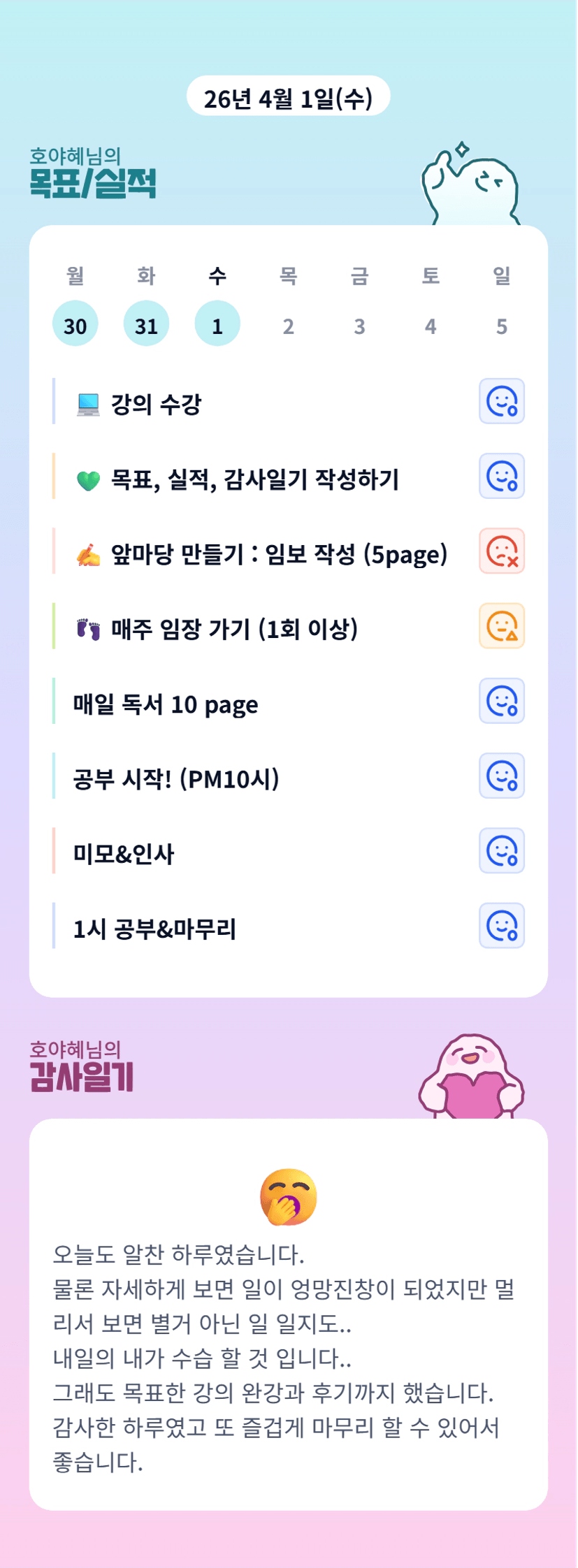 호야혜님 파이팅입니다!! 목표한 것들 촥촥 진행~~ 가보자고~~