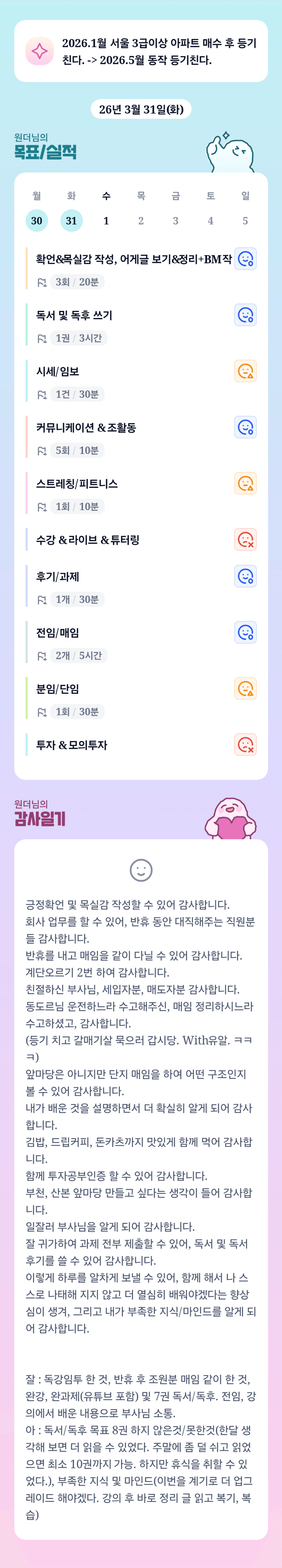 2026년 3월 한달 너무 수고했고, 잘 했어. 👏