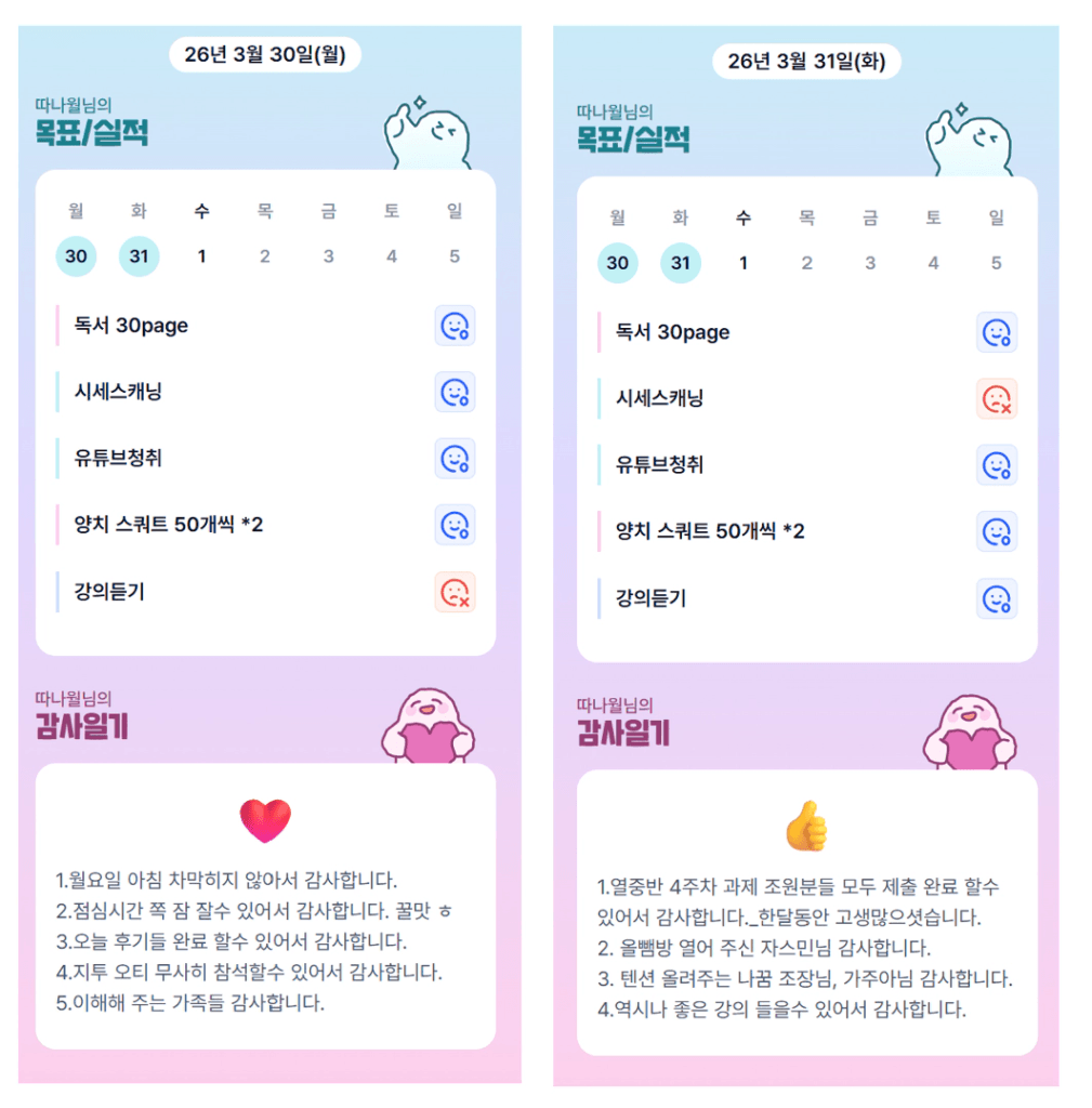 오오 양치스쾃… 비엠하겠습니다☺️ 열중 조원분들 과제도 모두 완수 넘 멋지네요!!! 한 달 같이 화이팅입니다!!!!
