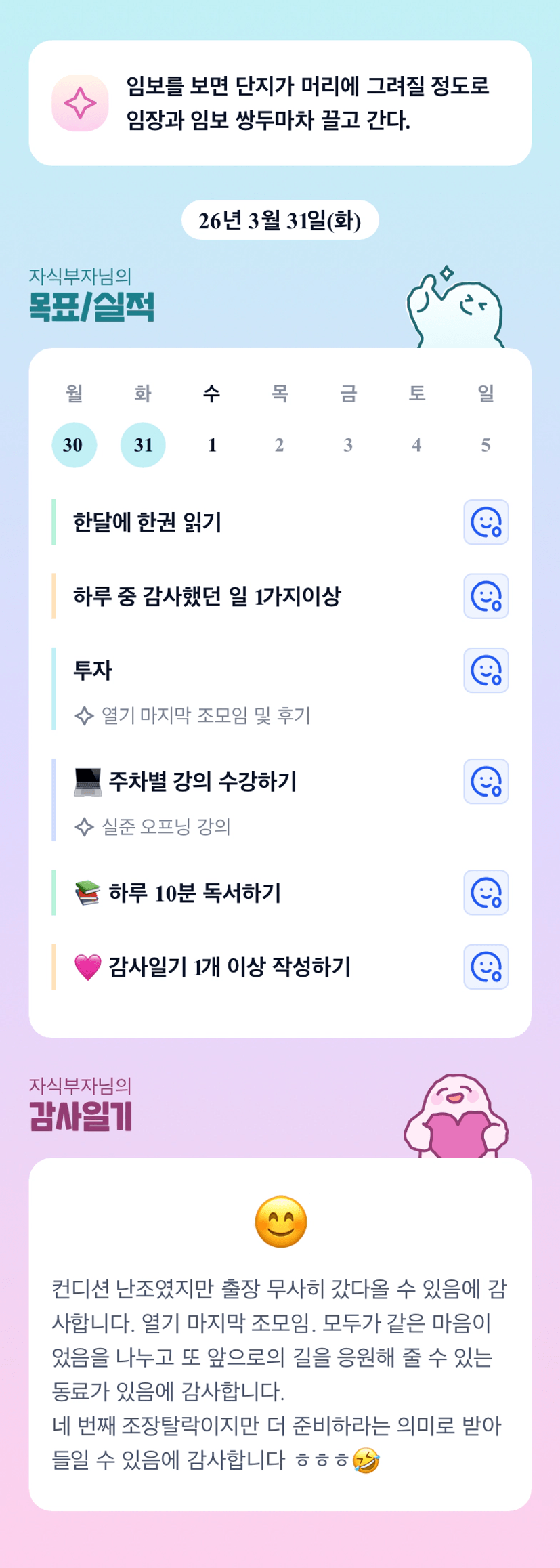 자식부자님 컨디션 안좋으신데 늦은시간까지 고생 많으셨어요!! 오늘은 컨디션 좋으시길 🙏
