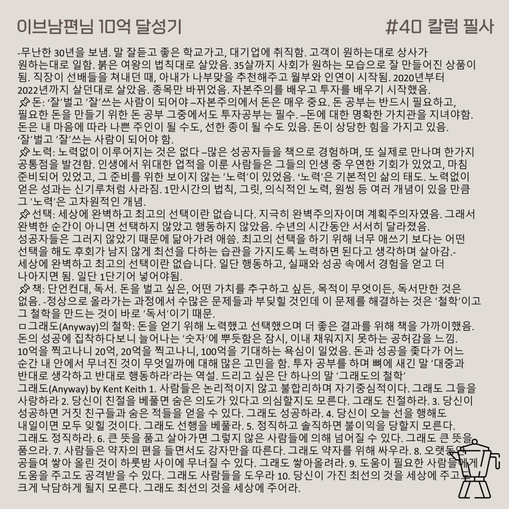 이브남편님 10억 달성기: https://cafe.naver.com/wecando7/7118782