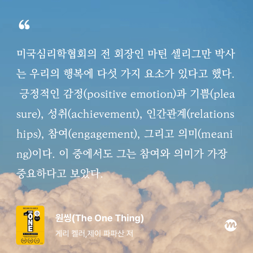 💡행복의 다섯가지 요소 중 가장 중요한 “참여”와 “의미”