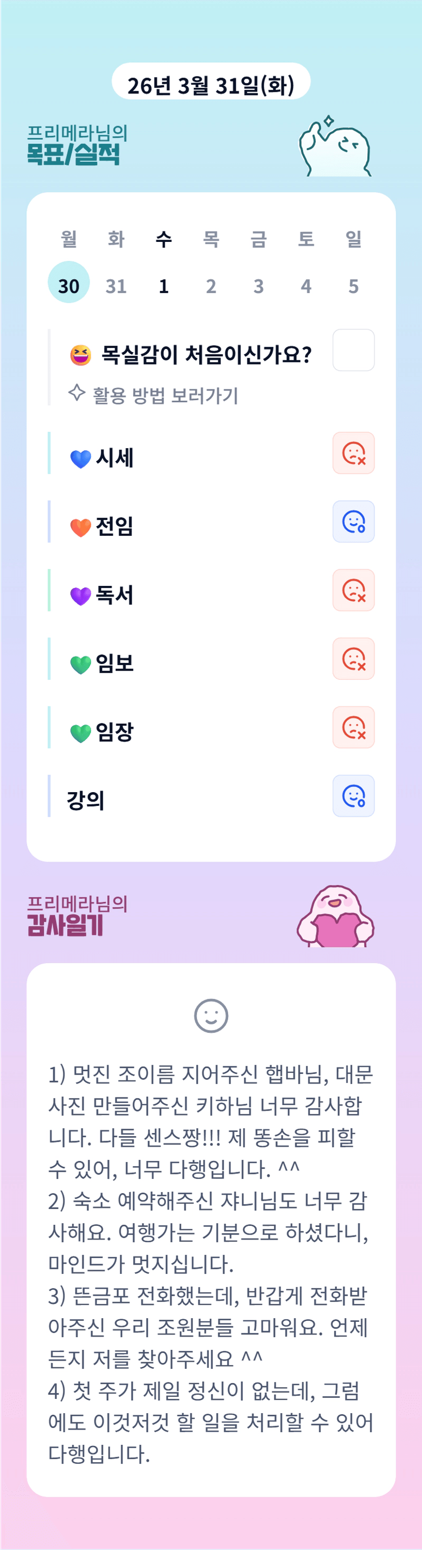 조장님~ 한 달 동안 잘 부탁드립니다^^ㅎㅎ