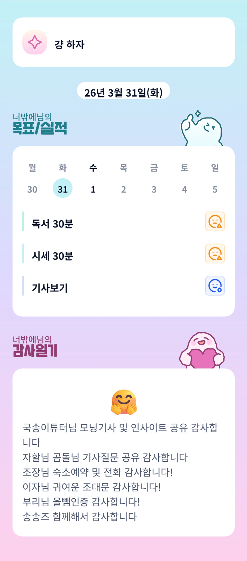 송송즈 진짜 귀엽다 ㅎㅎㅎ 송튜터님과 함께 이번달도 폭풍성장하세요 바케님♡