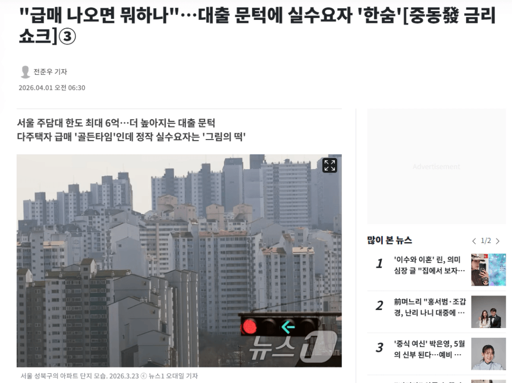 5월 9일 양도세 중과 유예 종료 이전에 다주택자 급매가 나오는 '골든타임'인데, 실수요자는 총량 규제와 초고금리가 맞물리며 내 집 마련 기회를 잡는데 어려워하고 있다.