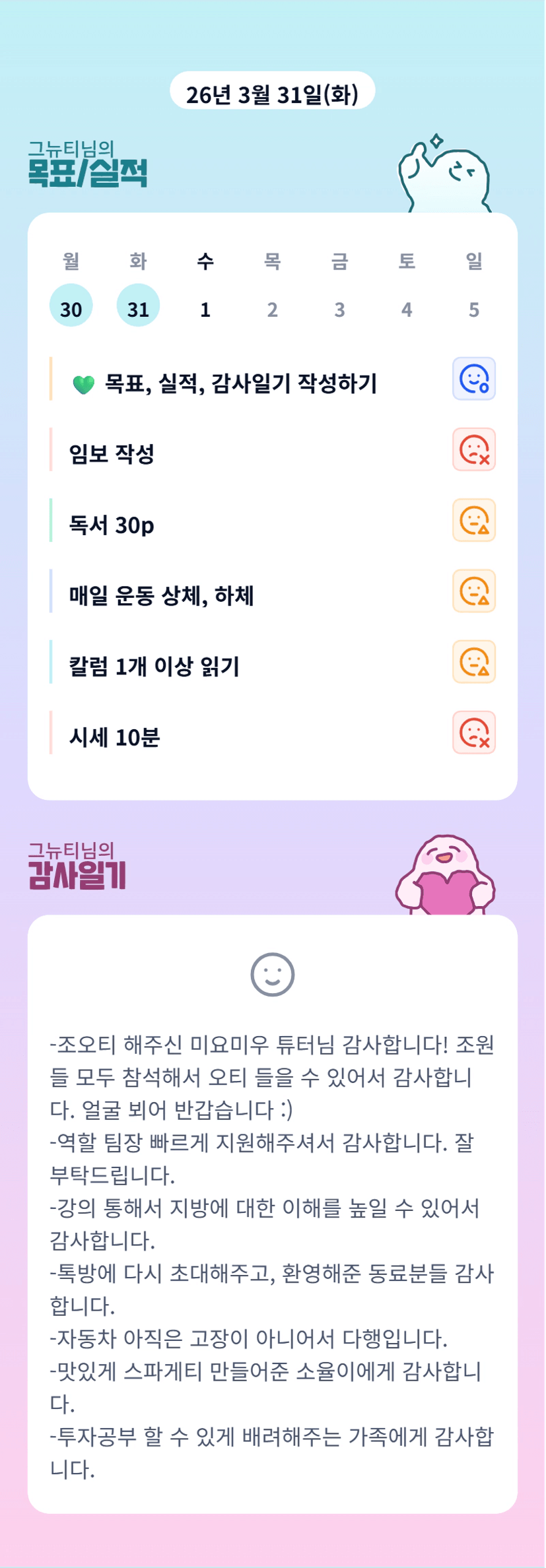 뉴티조장님 4월 파이팅입니다!!