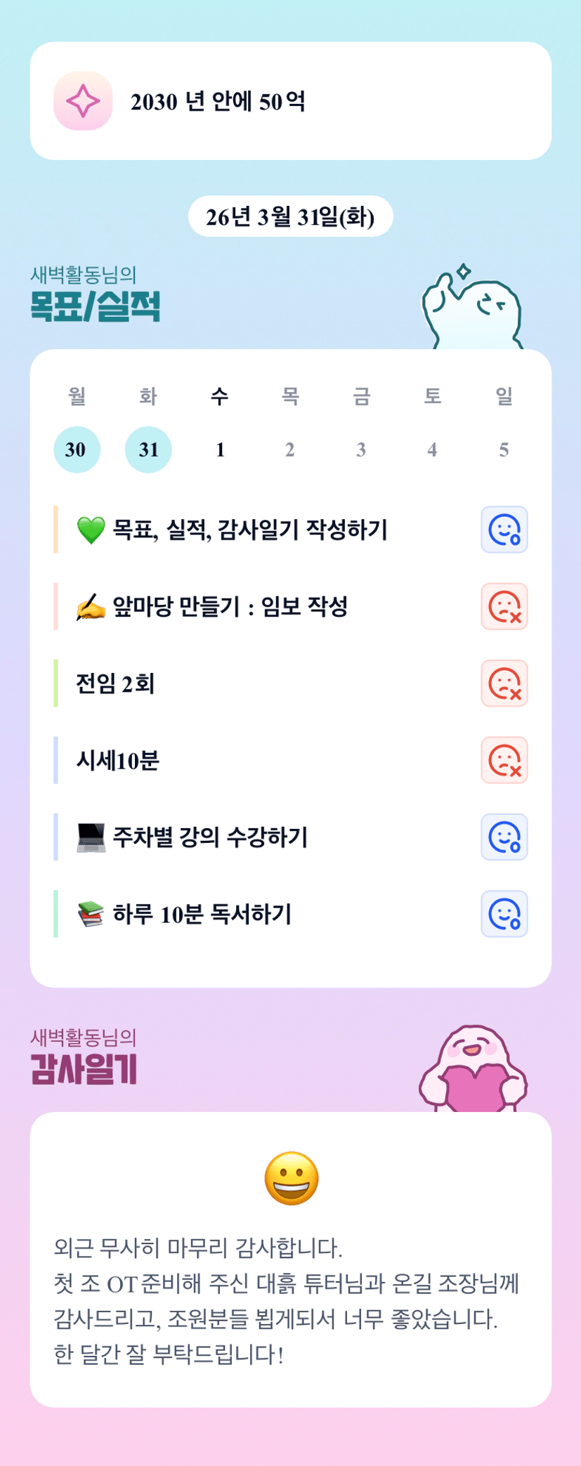 새벽님 목실감 파이팅 입니다. 이번 한달 잘부탁드립니다