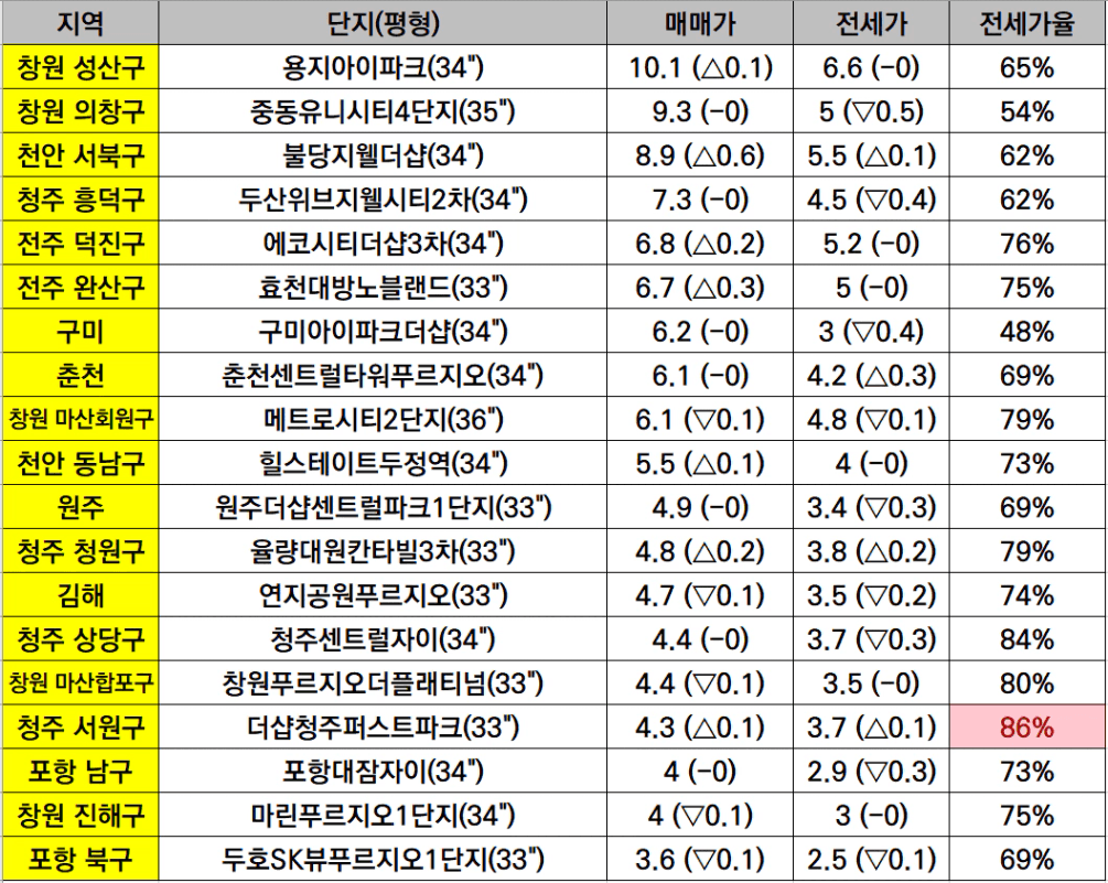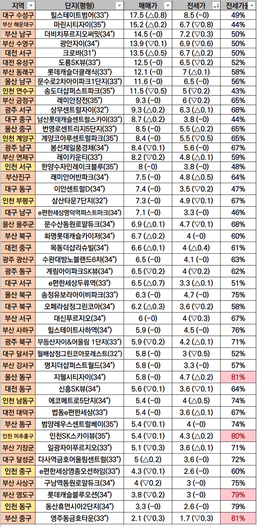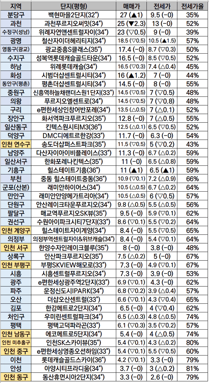 전세 가격이 오르면서 투자금은 줄어드는 상황입니다.