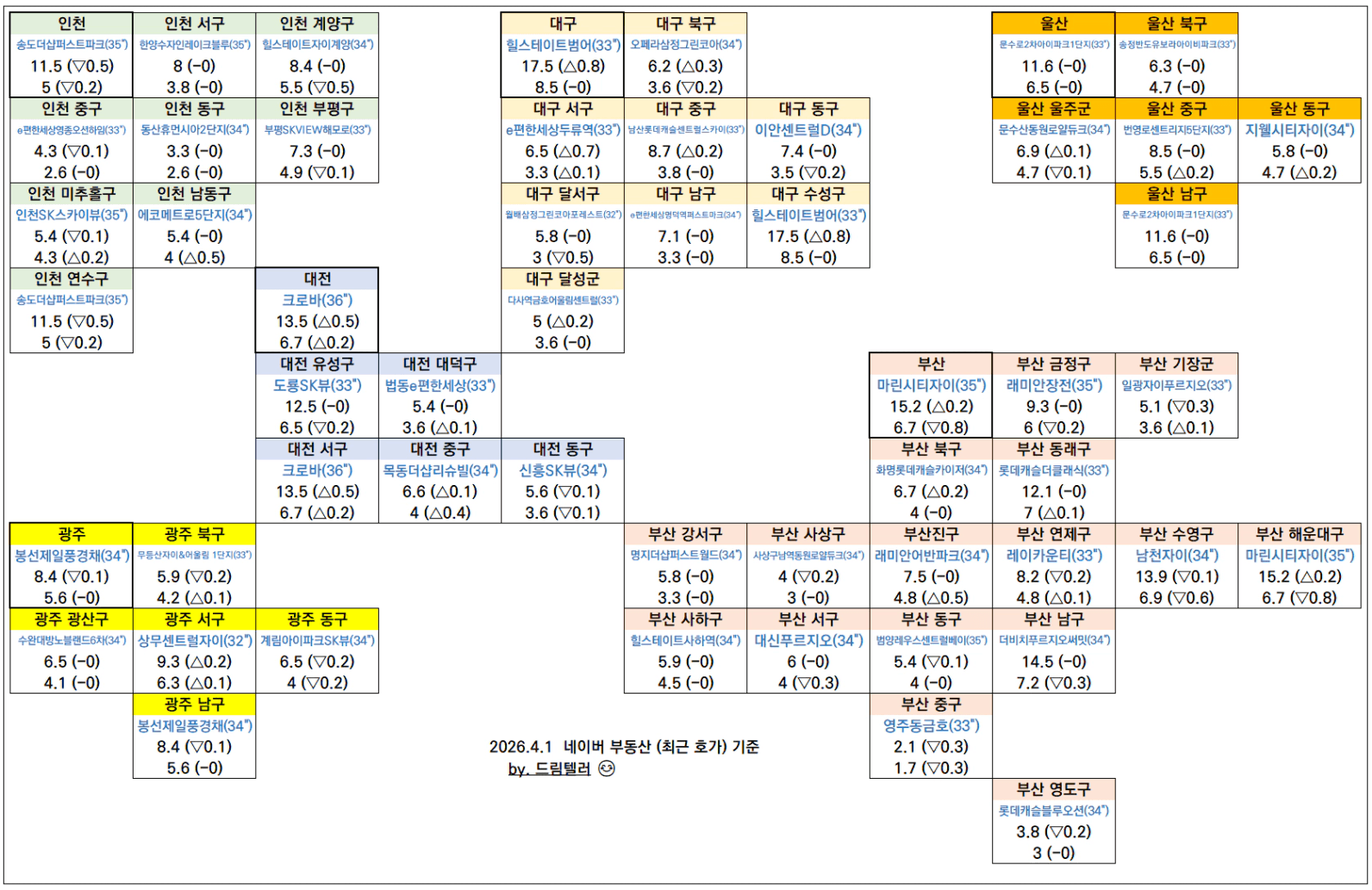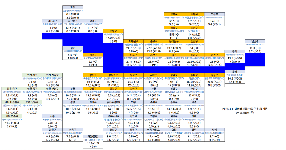 ※ 전국 랜드마크(대장) 아파트 순위 및 시세 :