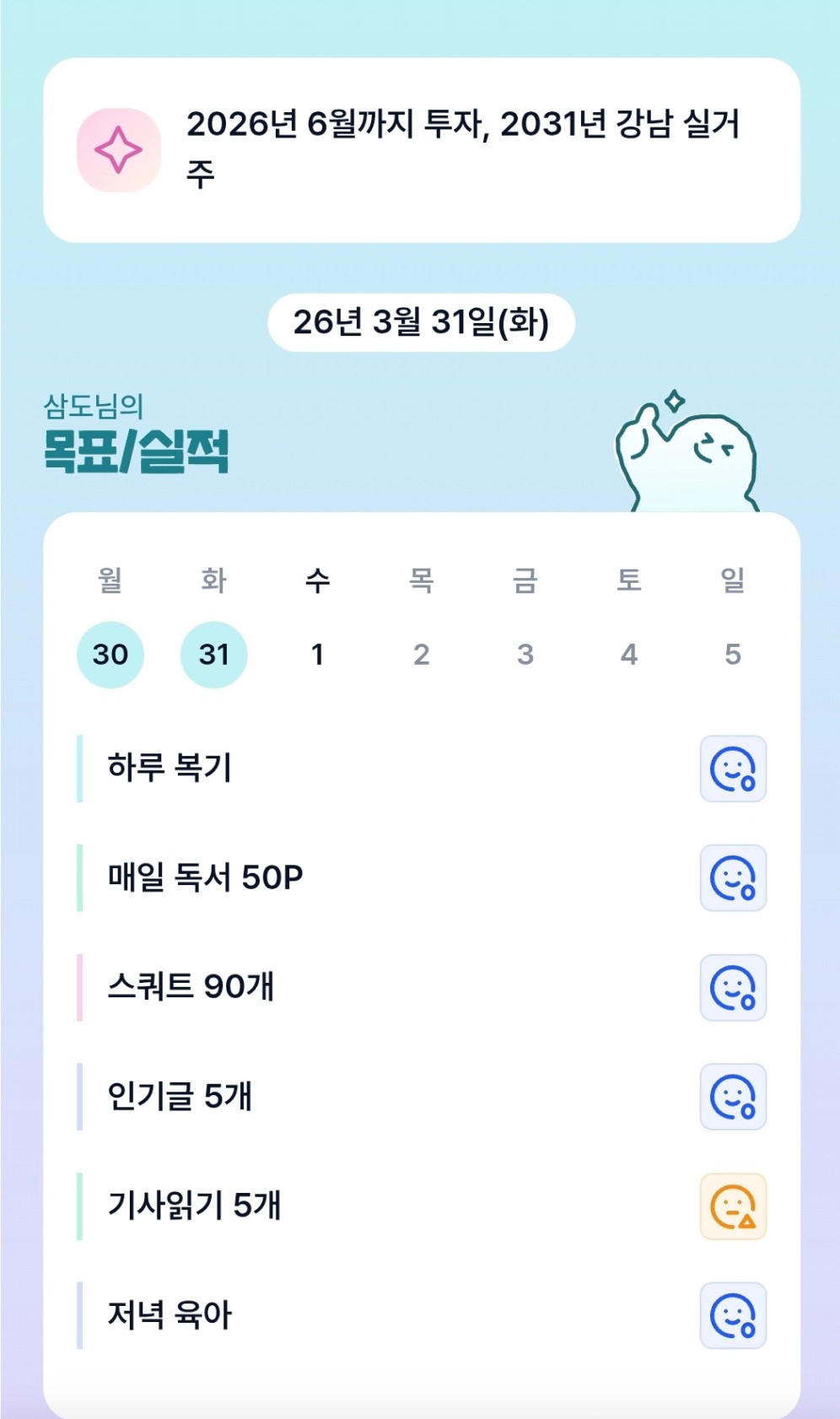 4. 아내가 사업관련 교육 잘 받고 안전하게 귀가해 주어 감사합니다. 12시 다되서 귀가해도 피곤한 기색없는 열정과 체력 리스펙 합니다. 오늘도 건강한 온가족+냥이에게 감사합니다.