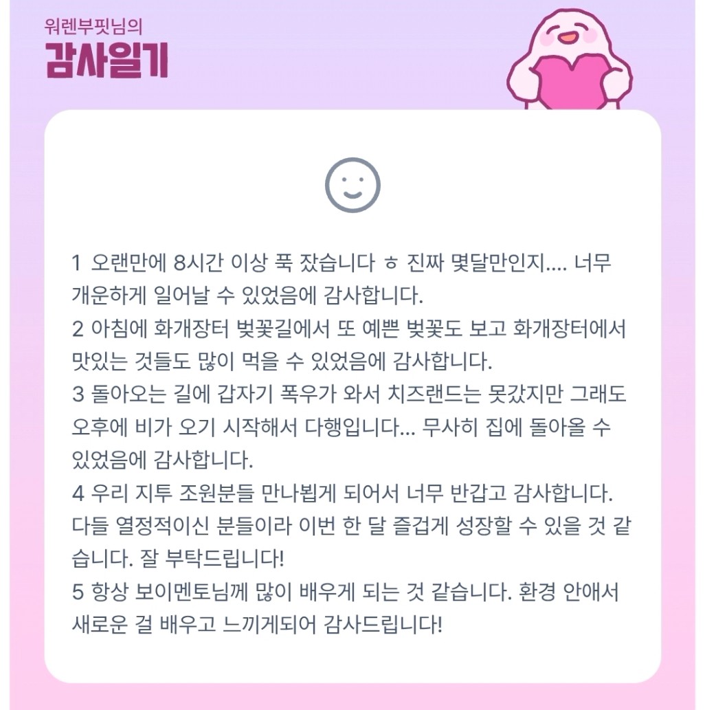 부핏님 4월도 응원하겠습니다 화이티이예요~~!!!