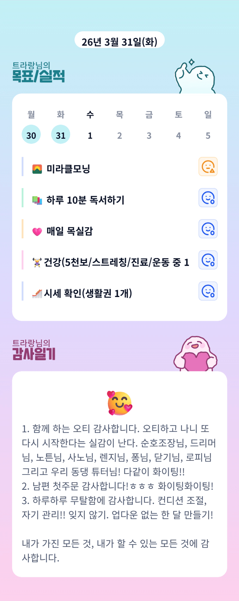내가 할 수 있는 모든것에 감사하기 ! 너무 좋은 마인드 인거 같아요 :)