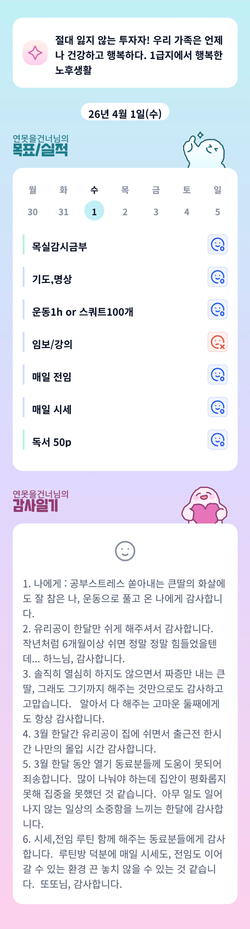 큰딸 화이팅입니다..! 그리고 건강하게 푸는 연못님도 화이팅입니다!!