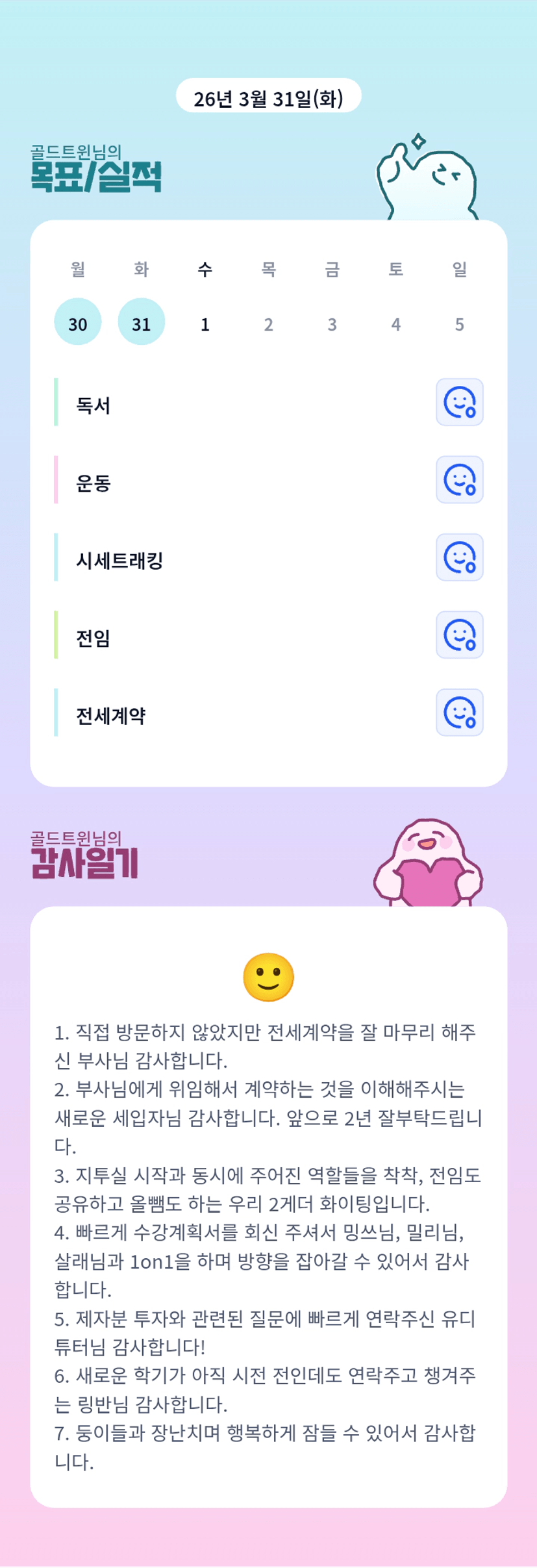 튜터님 전세셋팅 축하드립니다. 1on1도 고생많으셨습니다. 감사합니다.