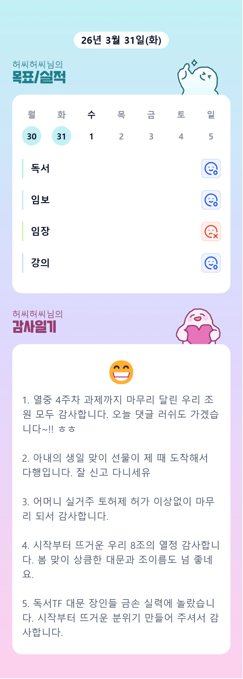 [열중49기 25조/독서TF 허씨허씨] 3. 31 감사일기