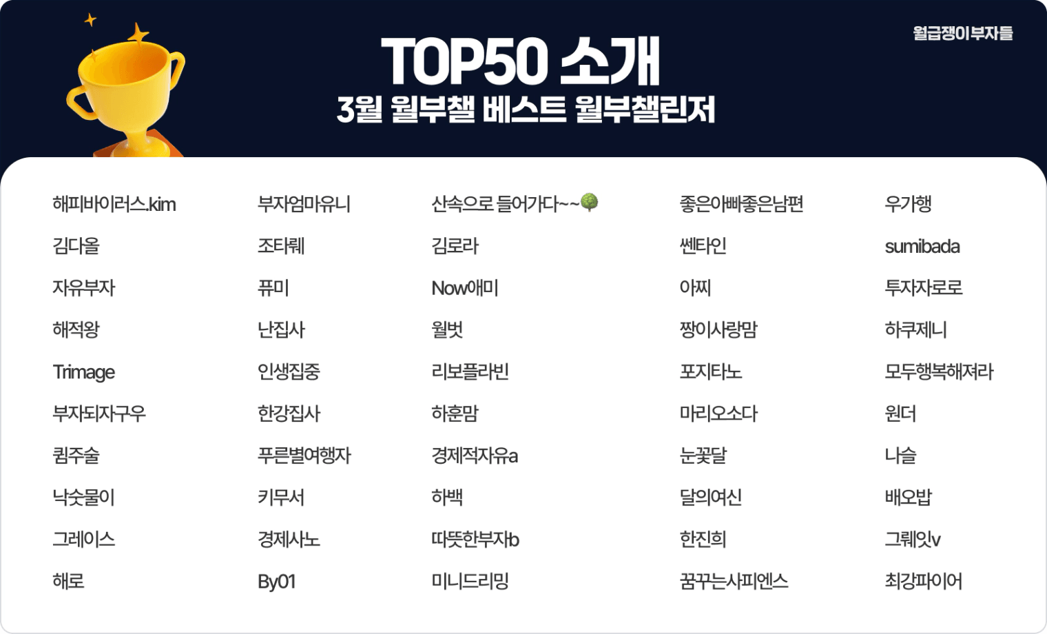 ๐ฅฐTOP50์ ๋์ จ๊ฑฐ๋ ์ฑ๋ฆฐ์ง์ ์ฐธ์ฌํ์ ๋ถ๋ค์