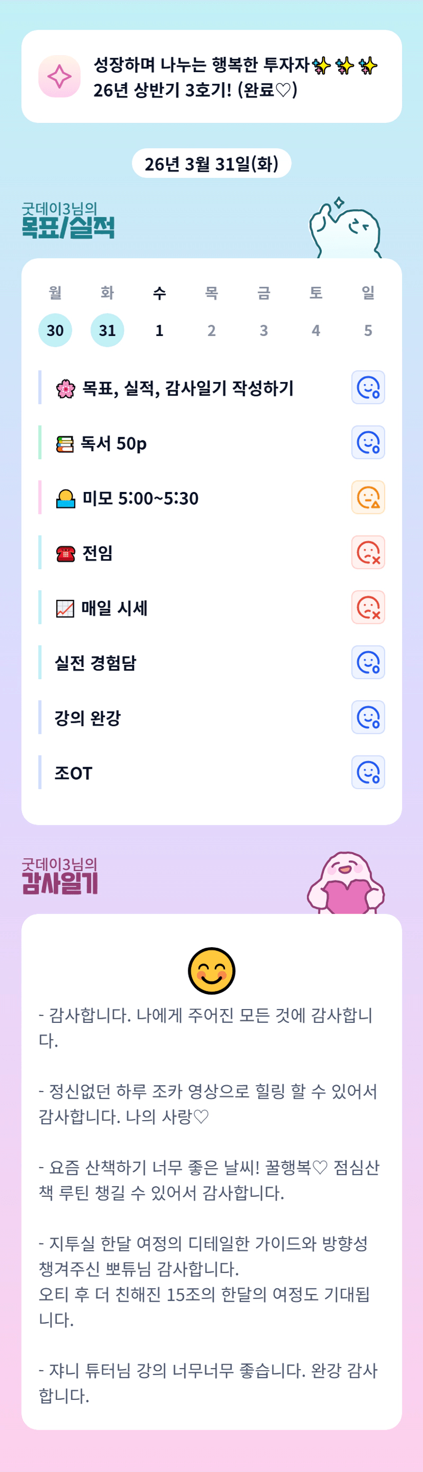 월 : 3월 복기 및 4월 계획, 1강 반강
