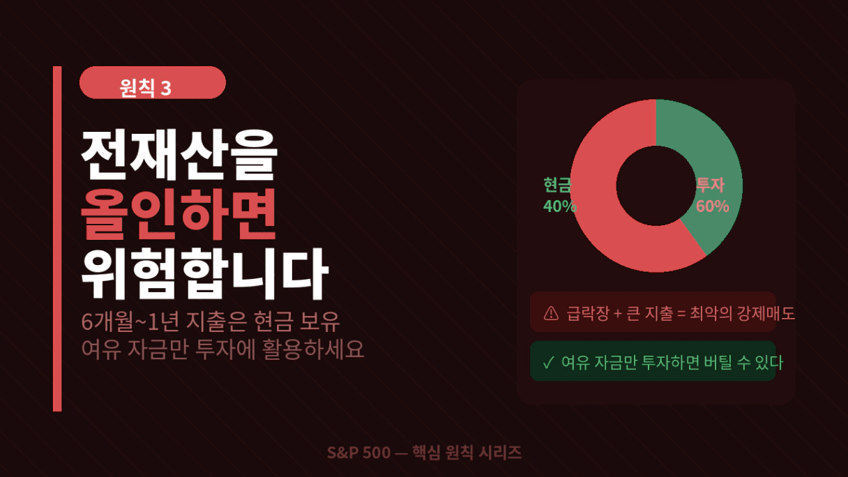 📍정리 : 모든 현금을 S&P500에 투자했다가 자금 운용이 어려울 수 있다. 집중 투자는 조심해야 한다.