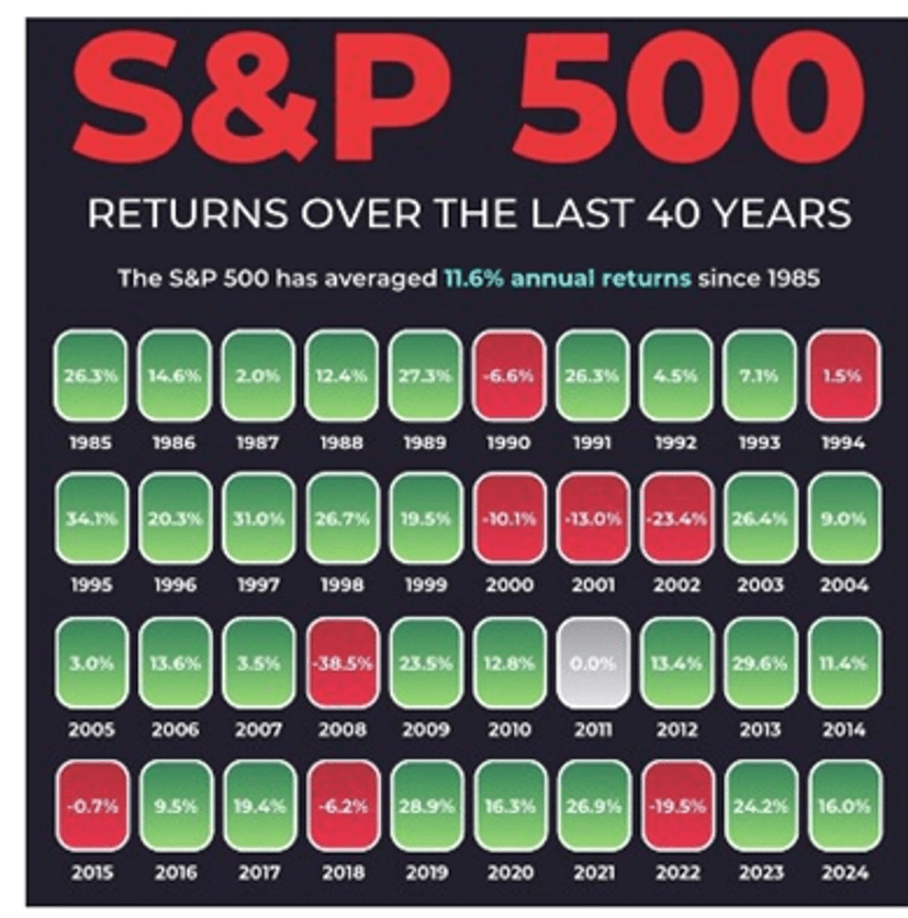 참고로 지난 40년 간 S&P500의 평균 수익률은 11%였습니다.